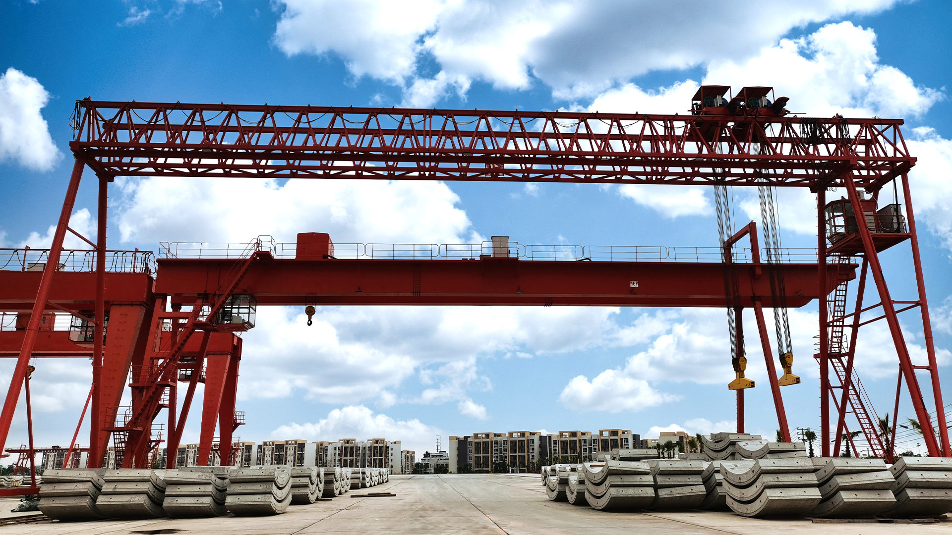 MELQ花架雙梁起重機(jī)是有軌運(yùn)行的中小型起重設(shè)備,主要由門架(主梁、支腿、下橫梁等)、起升機(jī)構(gòu)、運(yùn)行機(jī)構(gòu)及電控部分組成,以電動葫蘆作為起升機(jī)構(gòu),工作時沿主梁工字鋼下翼緣運(yùn)行。門架結(jié)構(gòu)為桁架桁架自重輕,抗風(fēng)能力強(qiáng)。整機(jī)具有自重輕、結(jié)構(gòu)簡單、安裝維修方便等特點(diǎn),適用于中小起重量范圍內(nèi)的廠礦、貨場及倉庫等室外場所作一般裝卸吊運(yùn)工作,禁止在有易燃、易爆及充滿腐蝕性氣體的環(huán)境中工作。