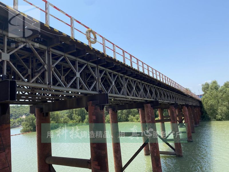 鋼便橋一般來講,就是利用鋼結(jié)構(gòu)形式的框架或桁架形式的裝配式鋼橋。以高強(qiáng)鋼材制成輕便的標(biāo)準(zhǔn)化桁架單元構(gòu)件及橫梁、縱梁、橋面板、橋座及連接件等組成,用用的安裝設(shè)備可就地拼裝成,適用于各種跨徑、荷載的桁架橋梁